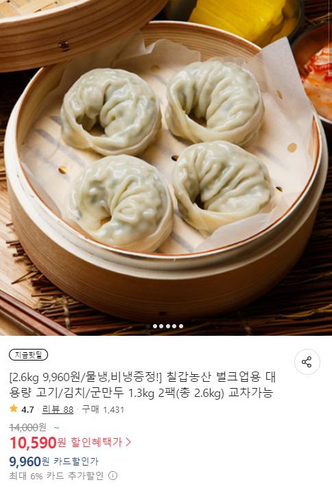 [위메프] 칠갑농산 대용량 고기/김치/군만두 1.3kg 2팩