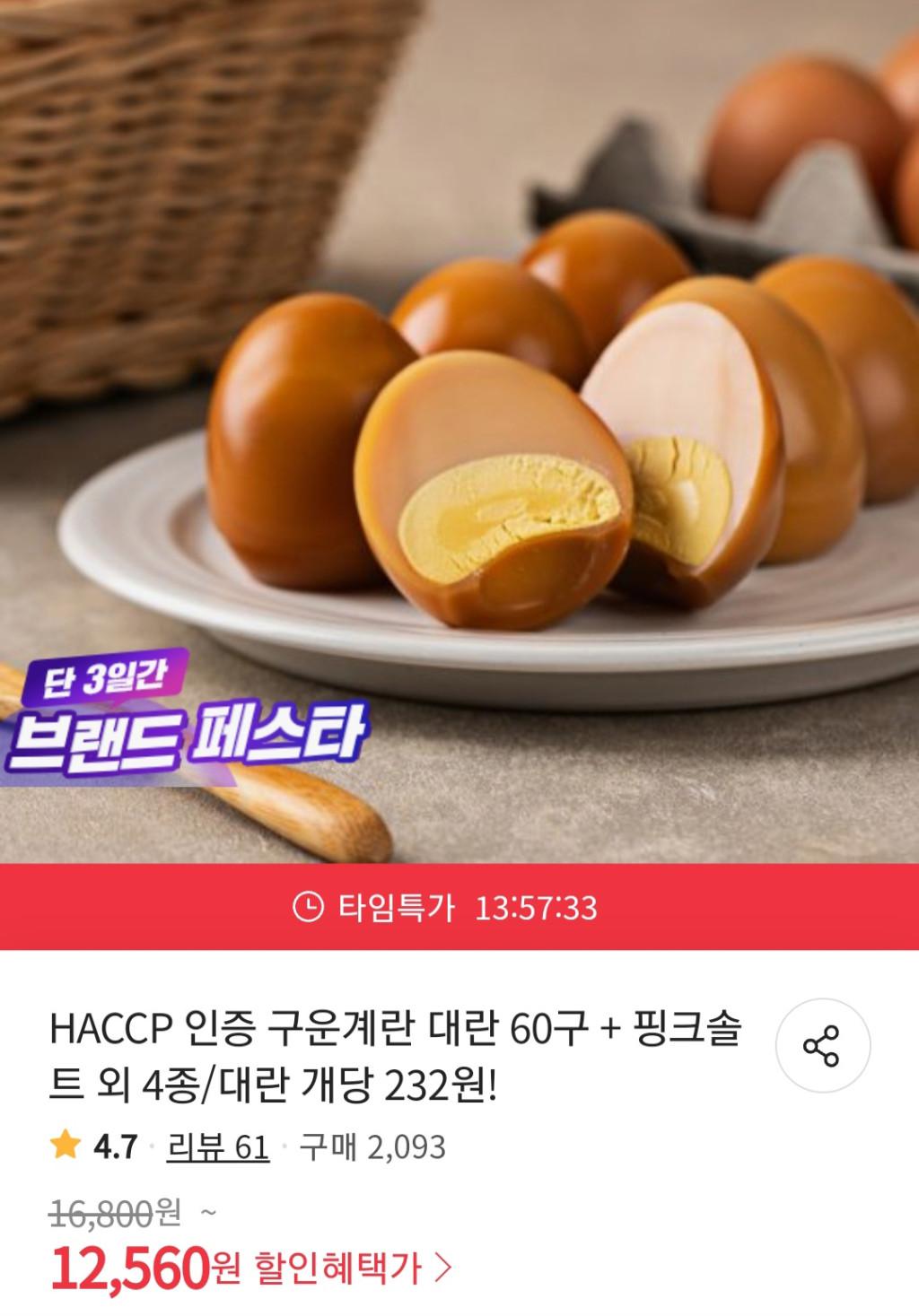 [위메프] 구운계란 대란 60구 + 핑크솔트 외 4종 (12,560원 / 무료배송)