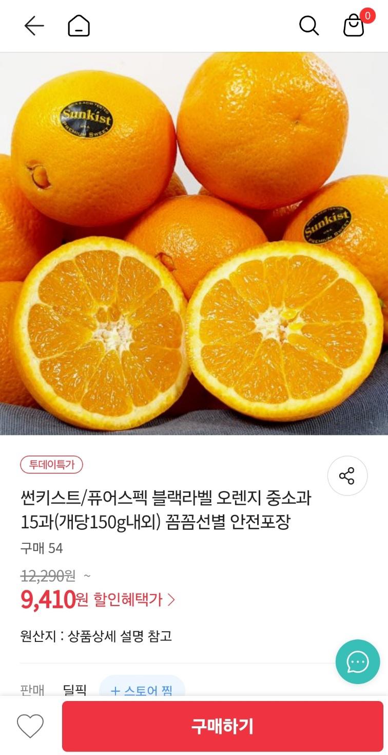 [위메프] 퓨어스펙 블랙라벨 오렌지 중소과 15과 (9,410원 / 무료배송)