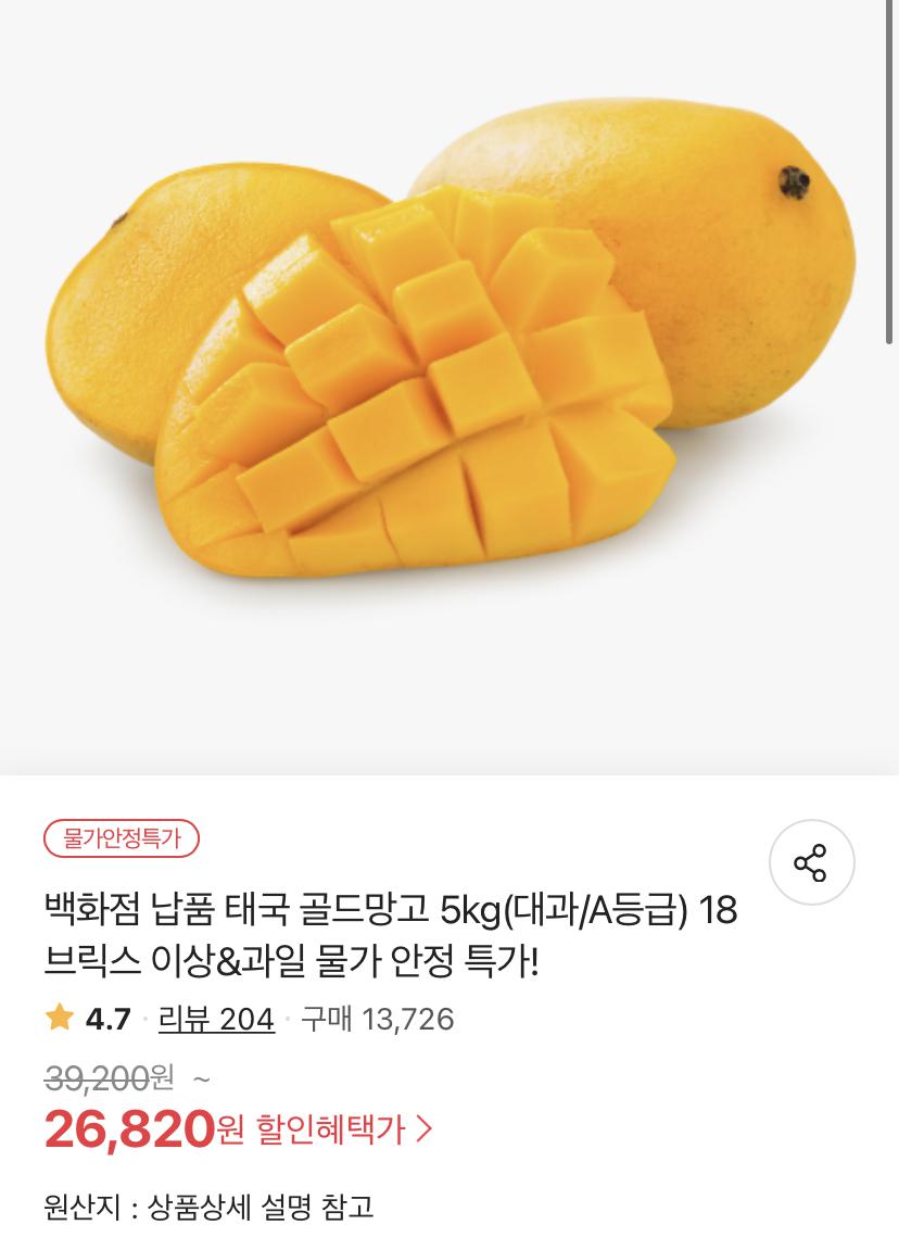 [위메프] 태국 골드망고 5kg 대과/A등급