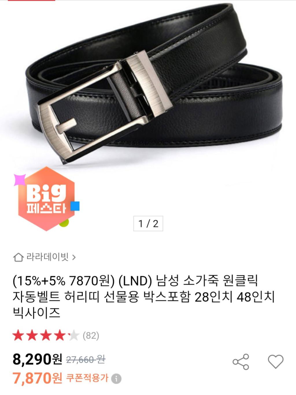 [옥션] 남성 소가죽 빅사이즈 벨트 (7,870원 / 무료배송)