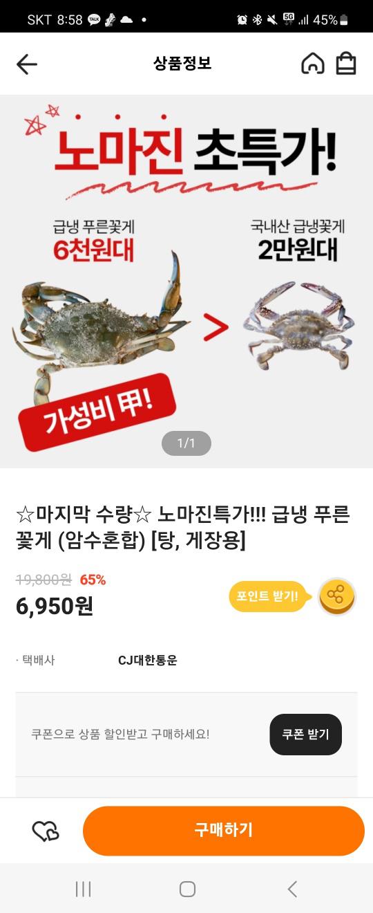 [기타] 급냉 푸른꽃게 (압수혼합) [탕, 게장용] (1kg당 6,950원)