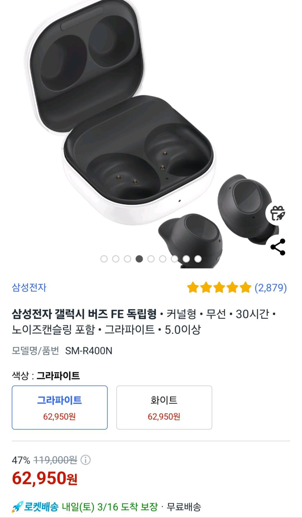 [쿠팡] 삼성전자 갤럭시 버즈 FE 블루투스 이어폰