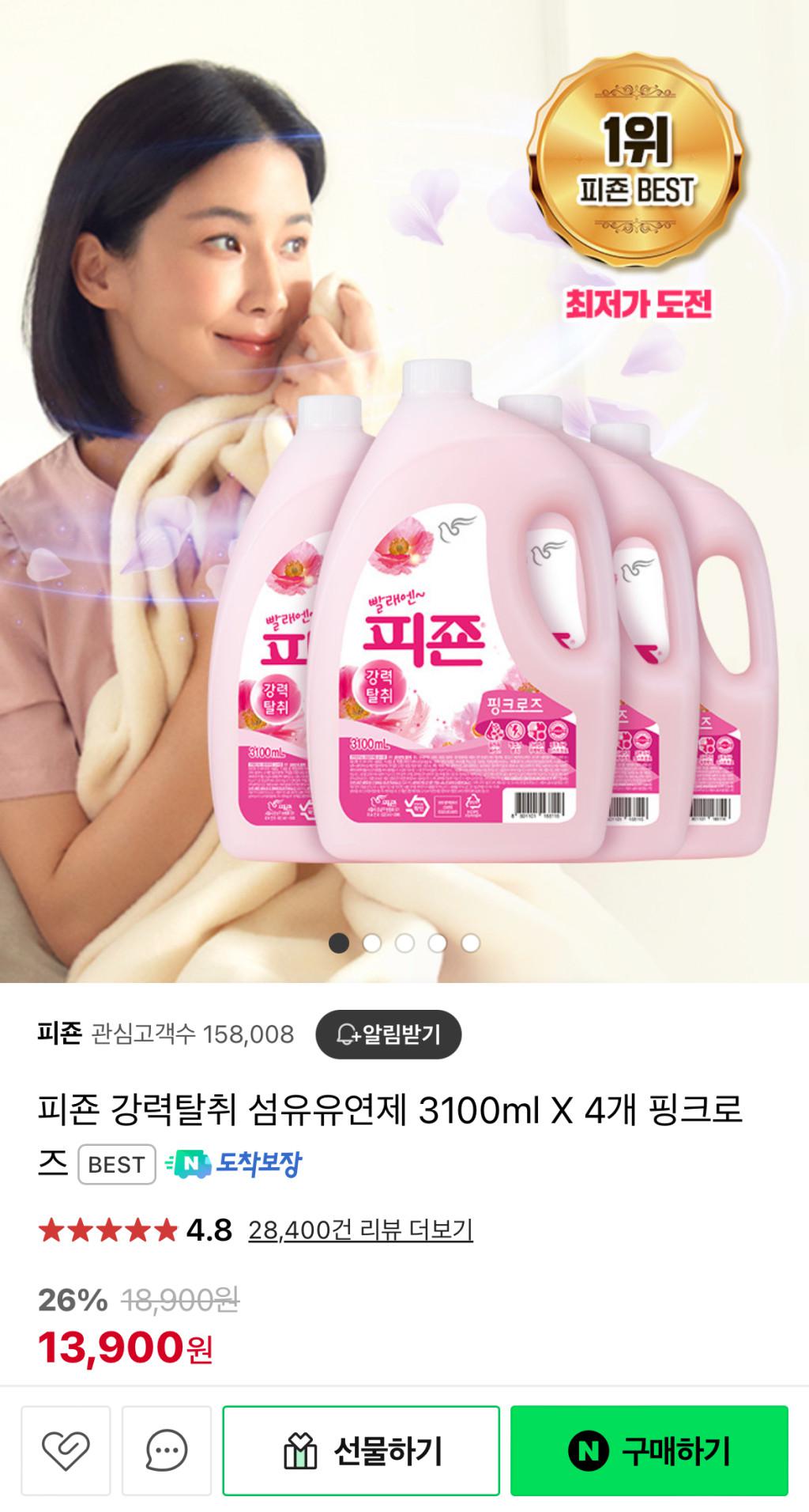 [네이버] 피죤 강력탈취 섬유유연제 3100ml 4개