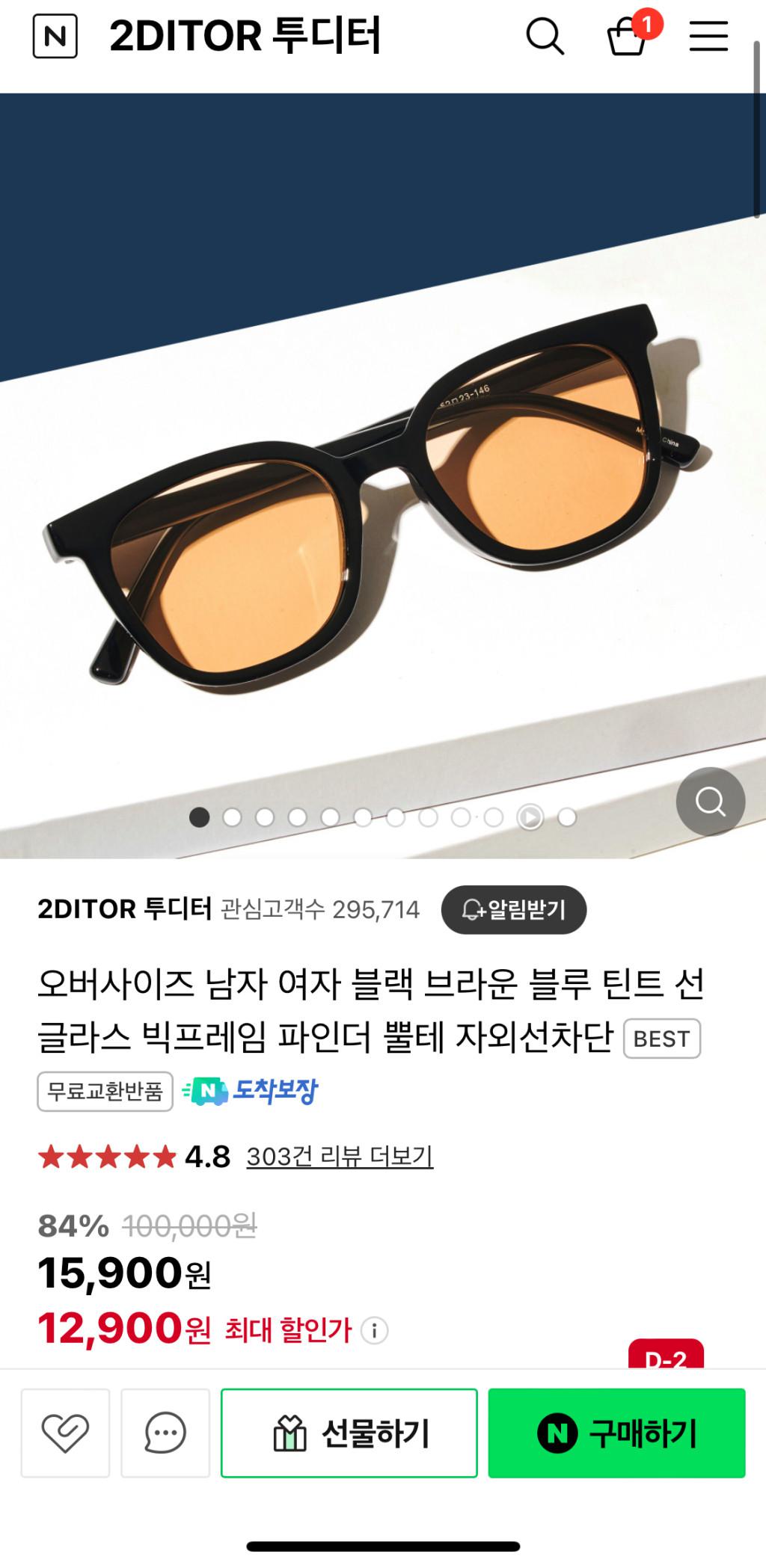 [네이버] 시부야 전쟁용 오버사이즈 틴트 선글라스 12900원