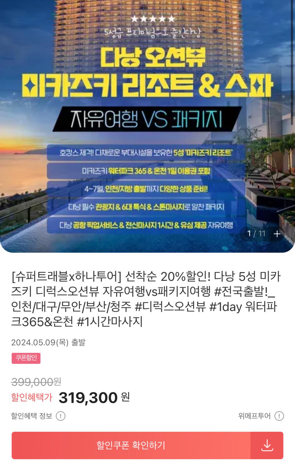 [위메프] 다낭 5성 미카즈키 오션뷰 자유여행vs패키지