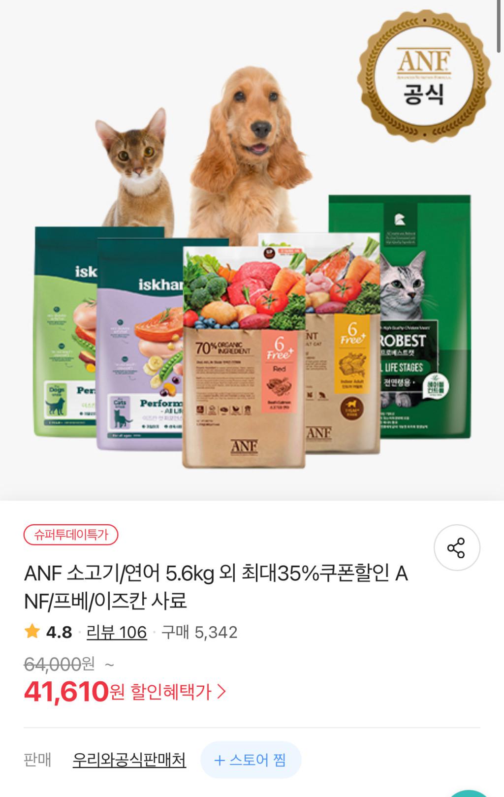 [위메프] ANF 소고기/연어 5.6kg 외 ANF/프베/이즈칸 사료