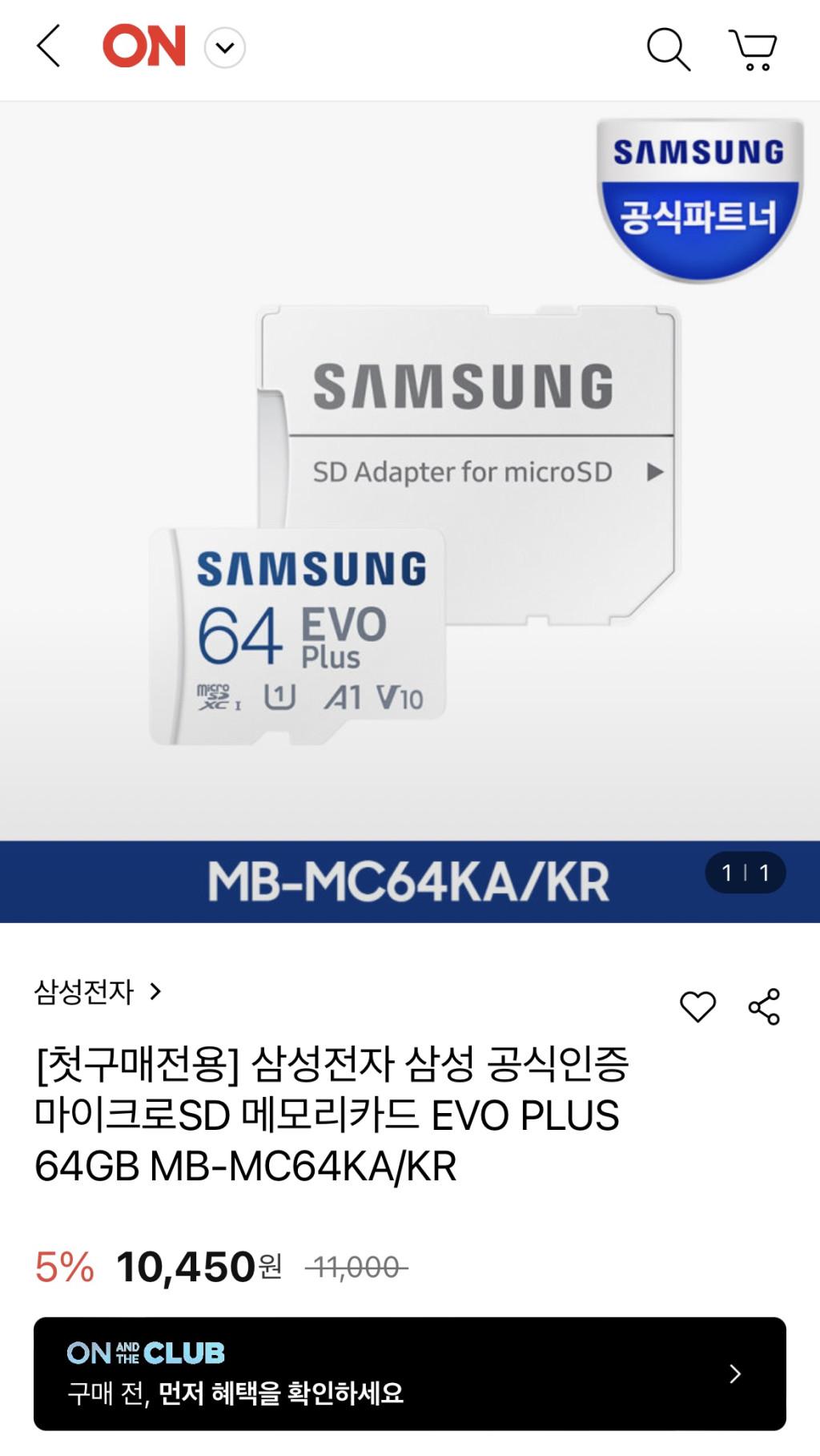 [롯데온] 삼성 마이크로SD 메모리카드 EVO PLUS 64GB MB-MC64KA/KR