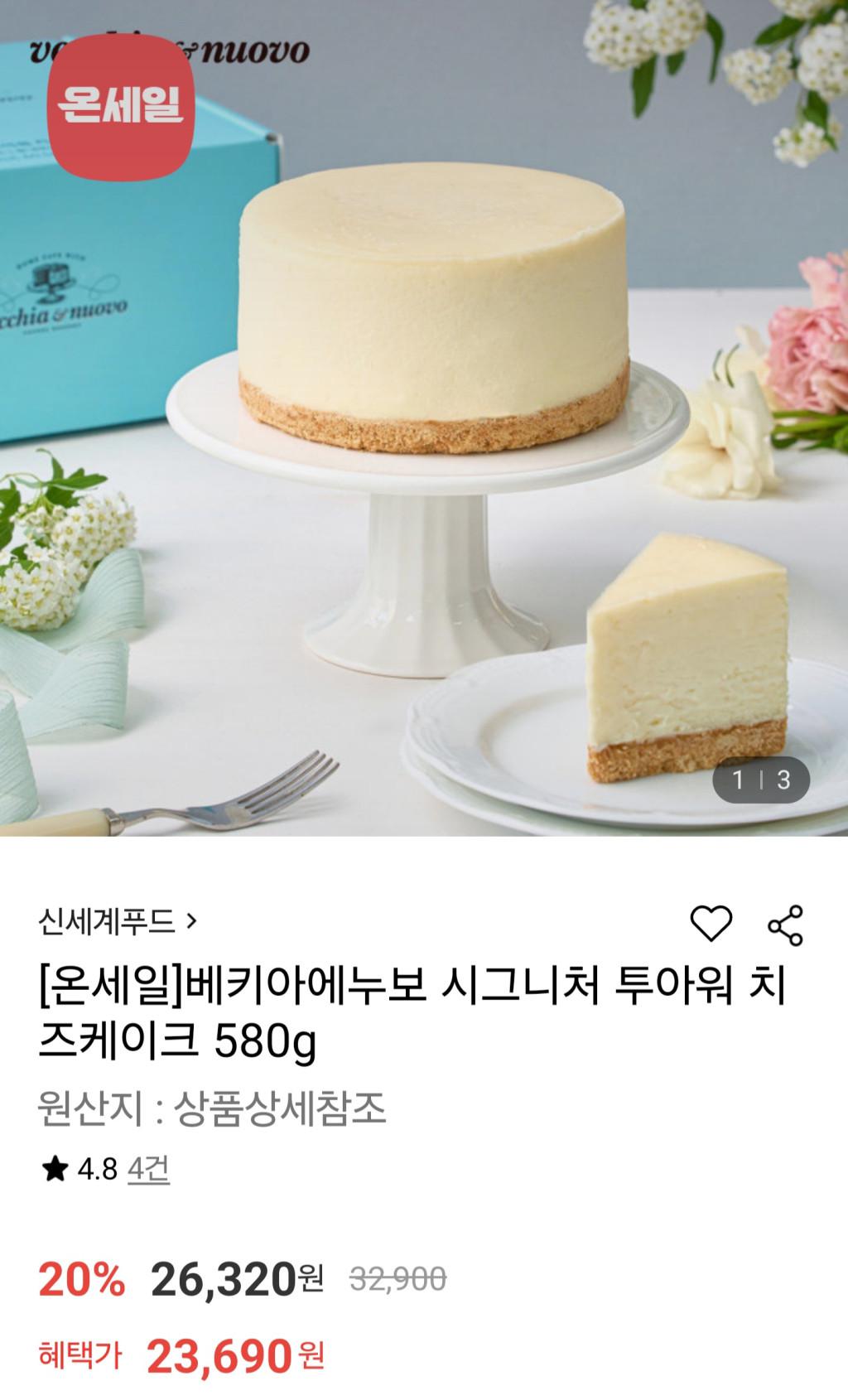 [롯데온] 시그니처 투아워 치즈케이크 580g (토스페이계좌/무배)