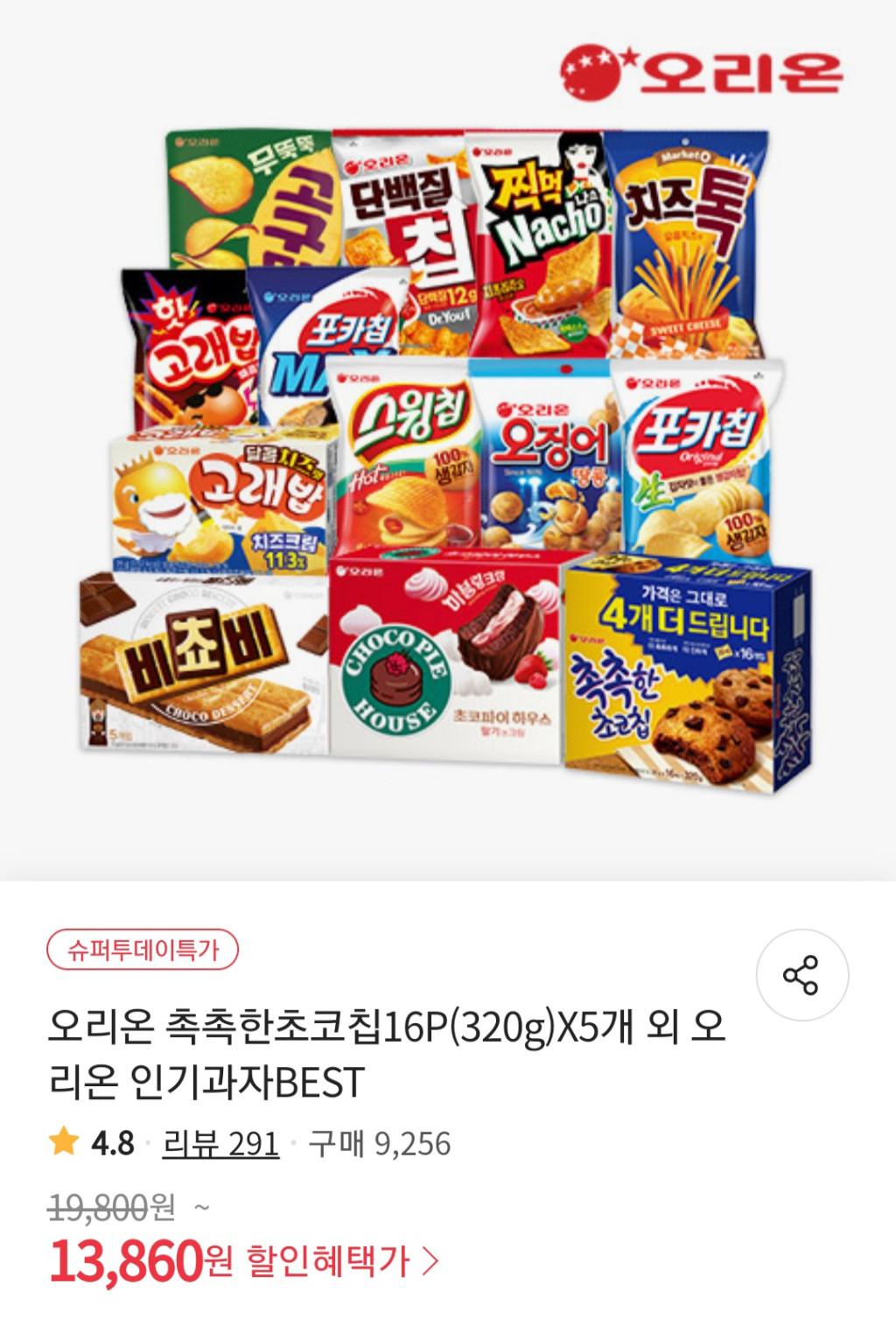 [위메프] 촉촉한 초코핍 16P x 5개 외 오리온 인기과자 BEST (13,860원 / 무료배송…