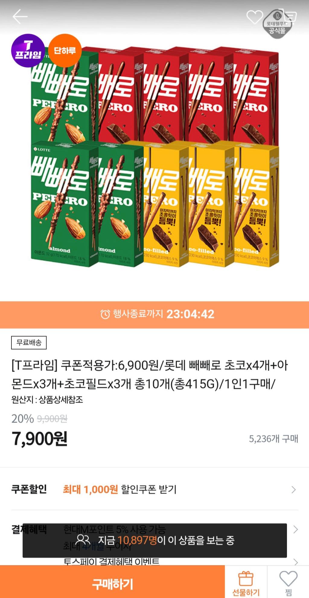 [티몬] 롯데 빼빼로 초코x4개+아몬드x3개+초코필드x3개 총10개(총415G)