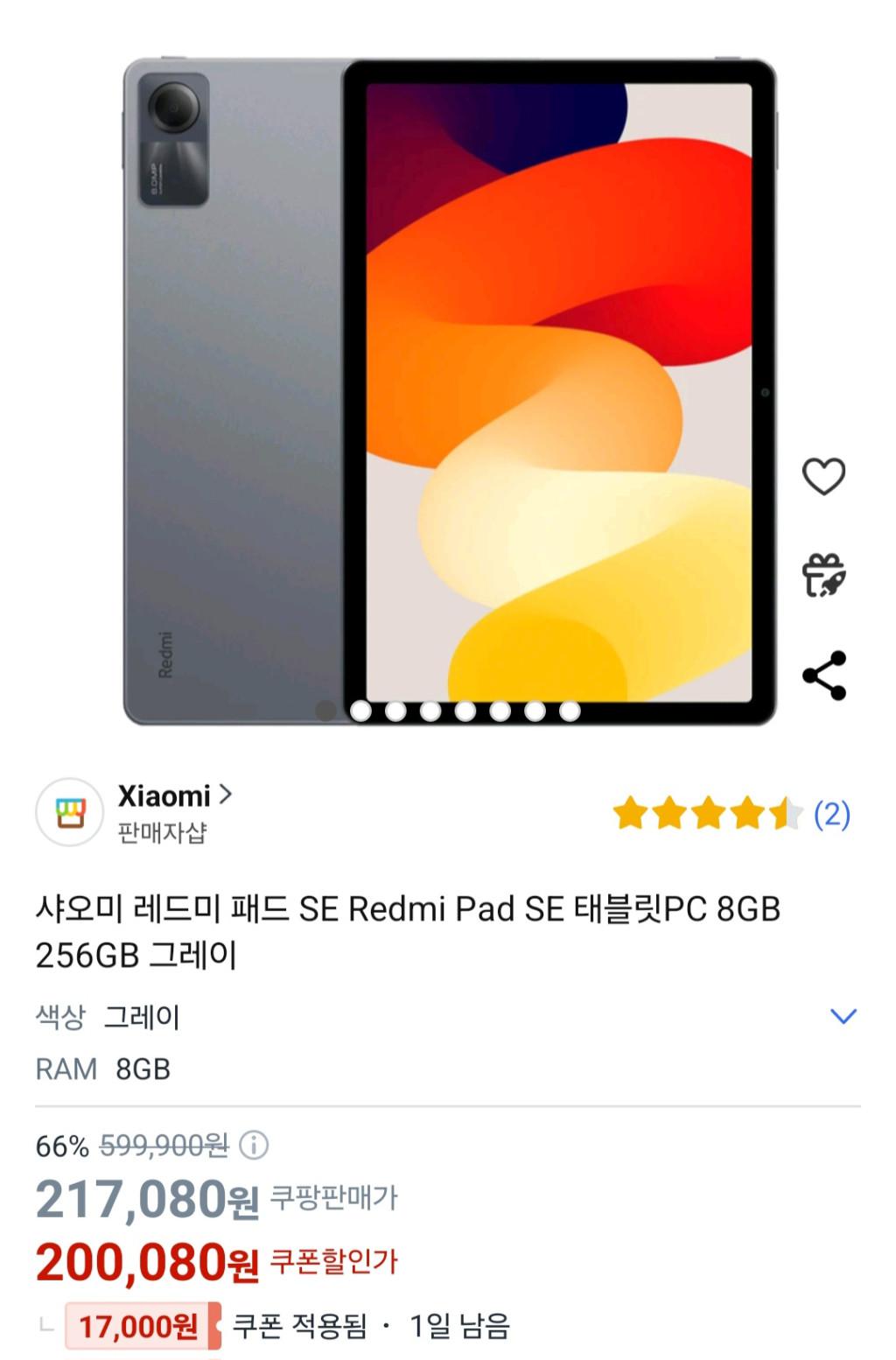 [쿠팡] 샤오미 레드미 패드 SE 8GB 255GB 그레이