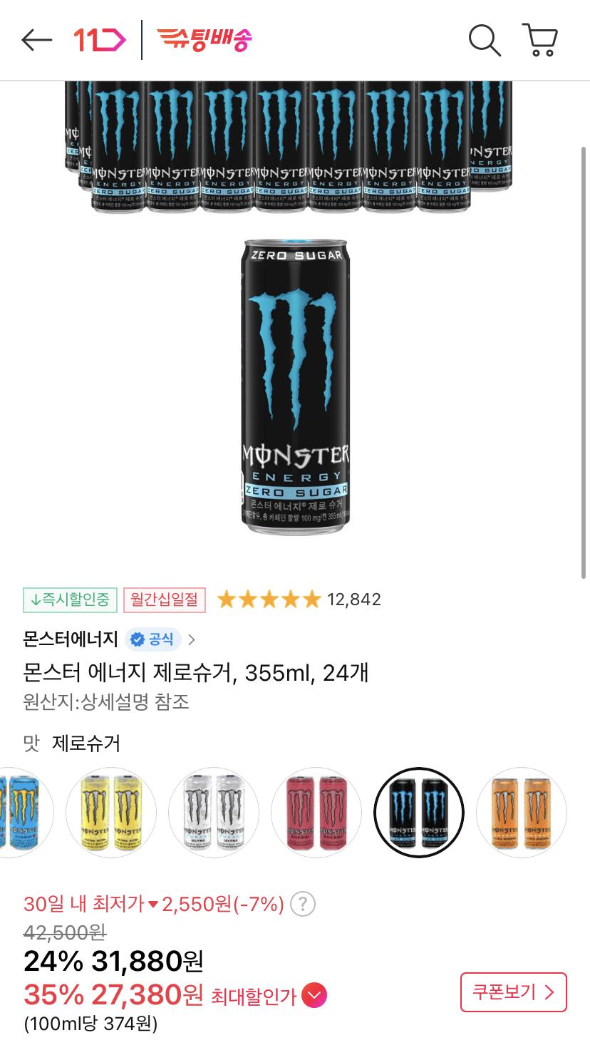 [11번가] 몬스터에너지 355ml 24캔 티멤버십 카카오페이