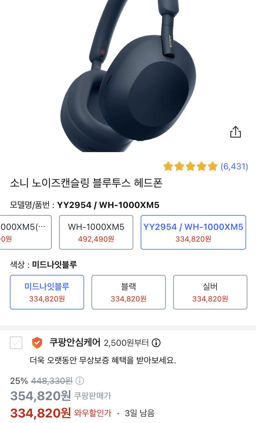 [쿠팡] 소니 노이즈캔슬링 블루투스 헤드폰 WH-1000XM5