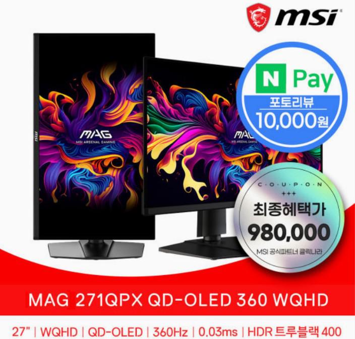 [롯데온] MSI QD-OLED 모니터 4종 특가 Sales (최종혜택가 980,000원 부터~)