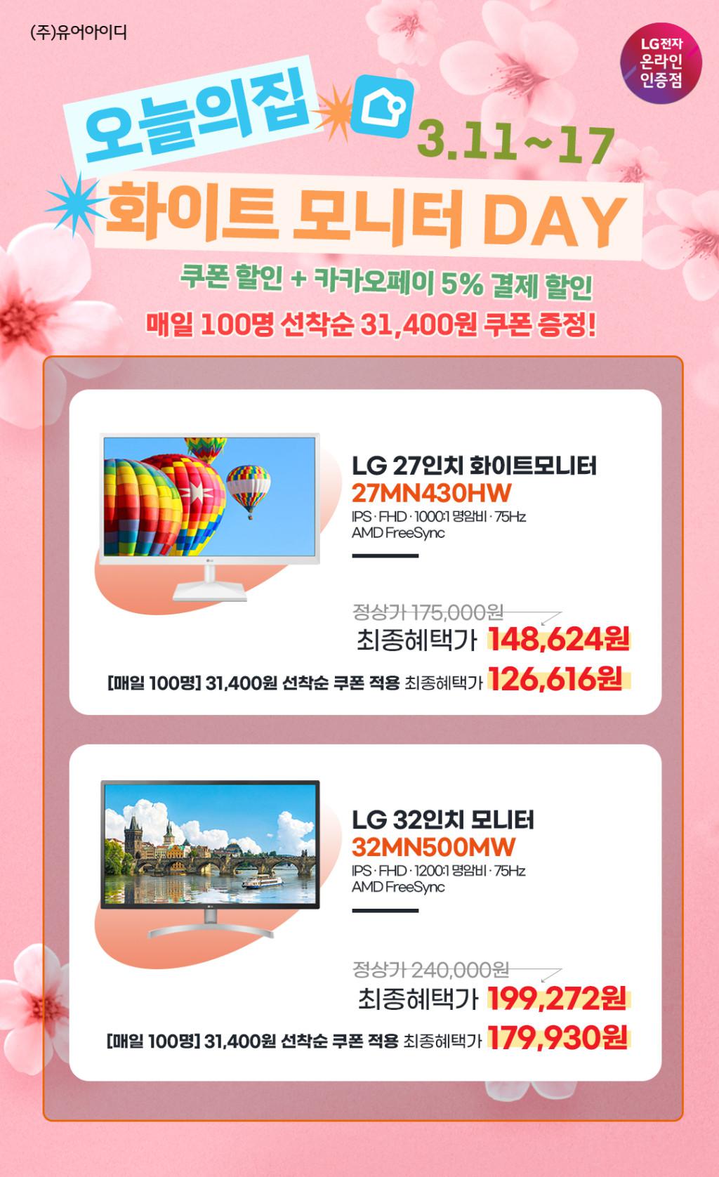 [오늘의집] [오늘의집] LG 27MN430HW, 32MN500MW 27,32인치 IPS패널 화이트…