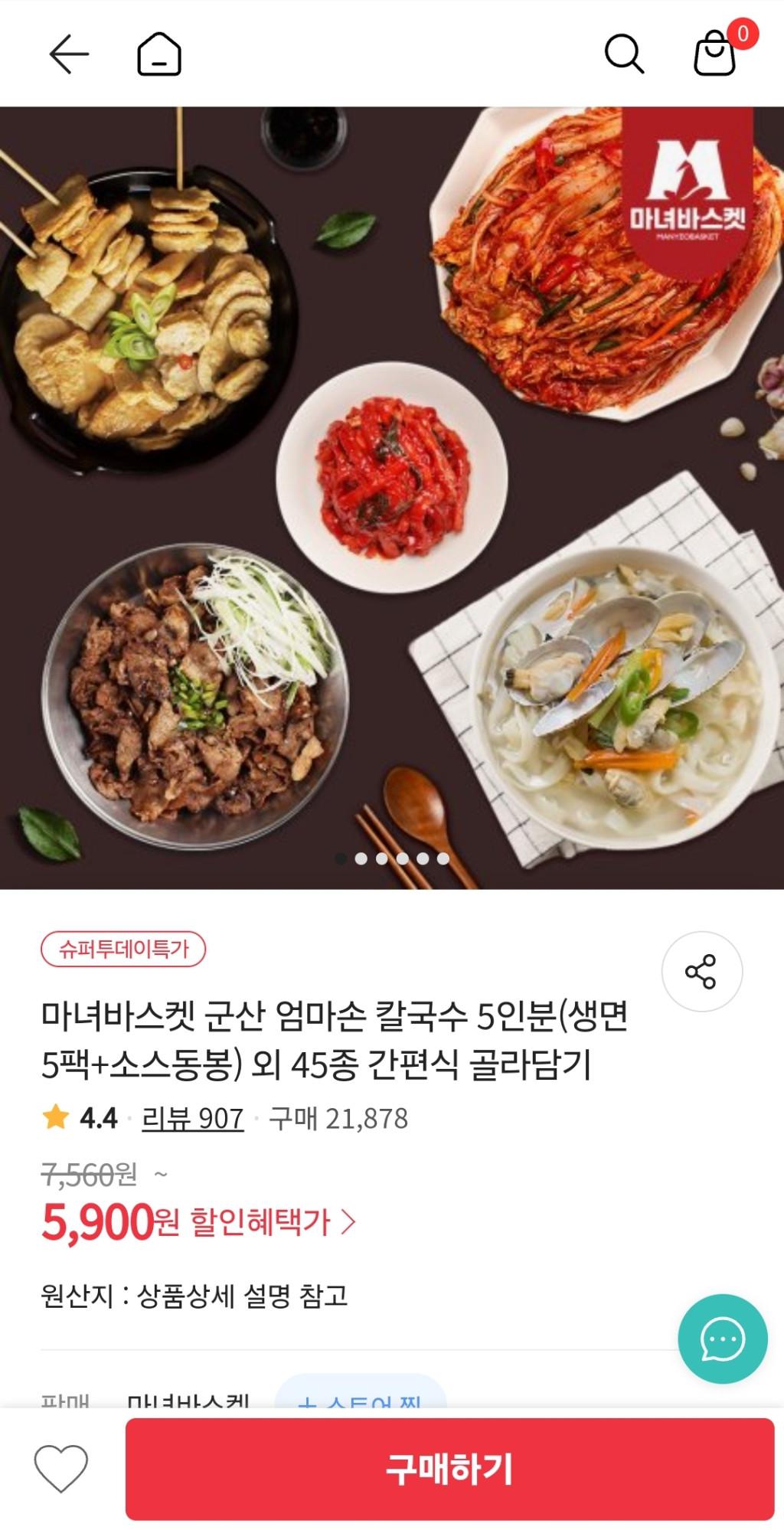 [위메프] 엄마손 칼국수 5인분 세트 (무배)