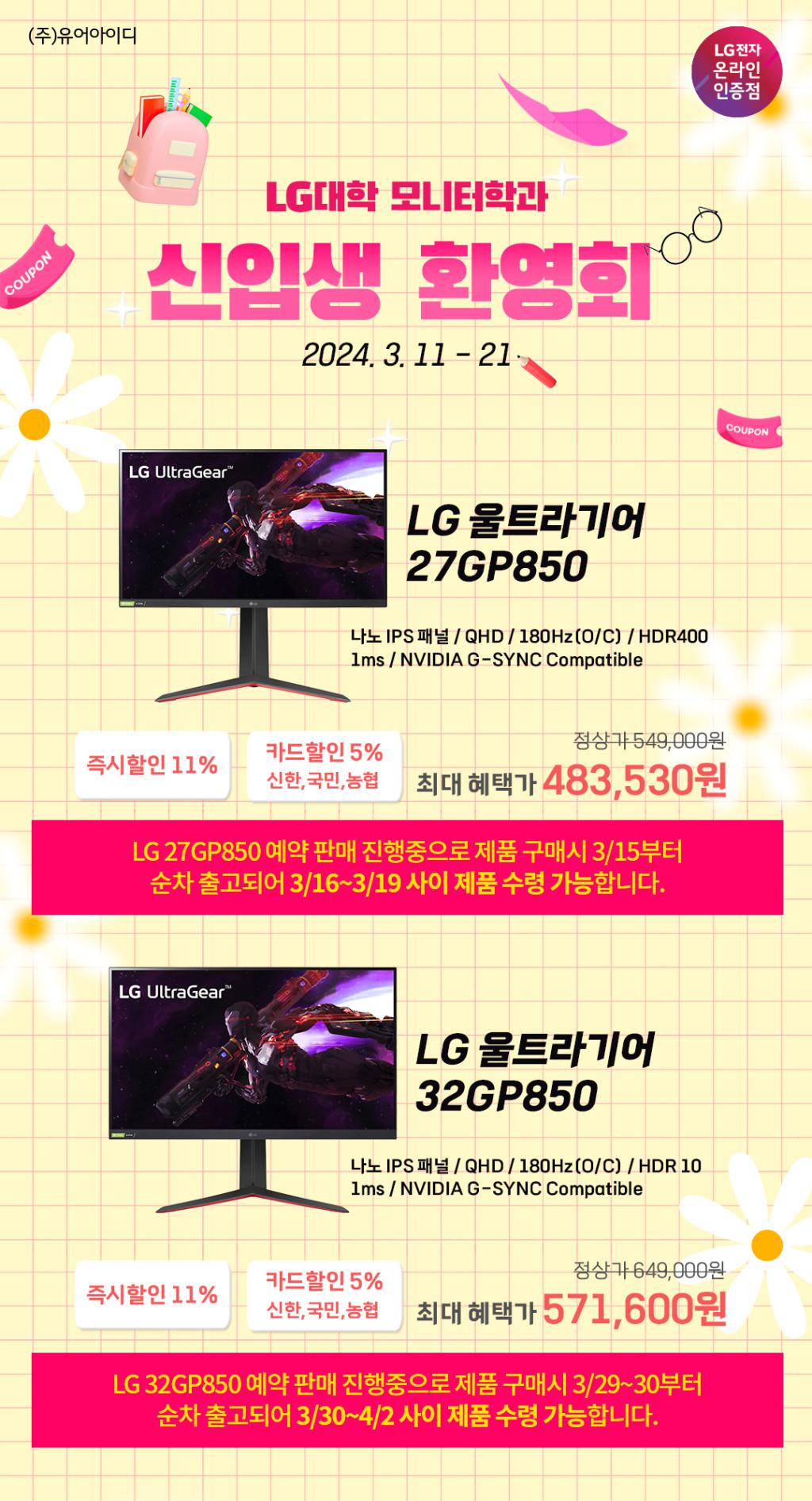 [11번가] [11번가]LG 27GP850,32GP850 나노IPS 울트라기어 게이밍모니터 LG대학…