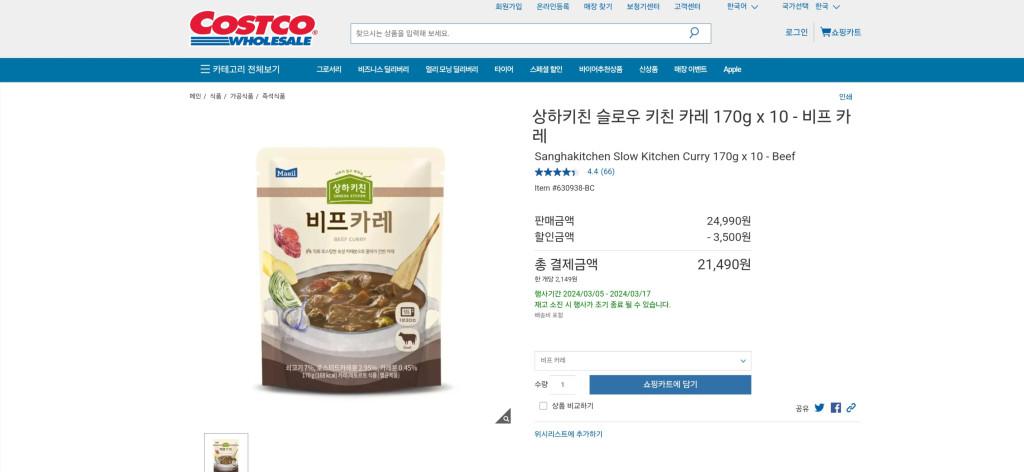 [코스트코] 상하키친 카레 170g x 10 (3개중 택1)
