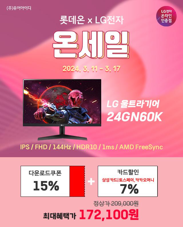 [롯데온] [롯데온] LG 24GN60K 24인치 IPS패널 울트라기어 게이밍모니터 온세일 행사 …
