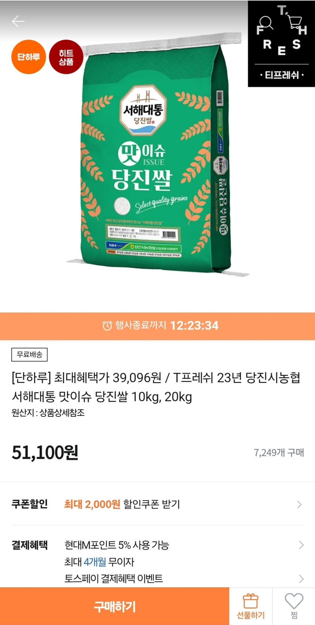 [티몬] 당진시농협 당진쌀 상등급 10kg 2포대