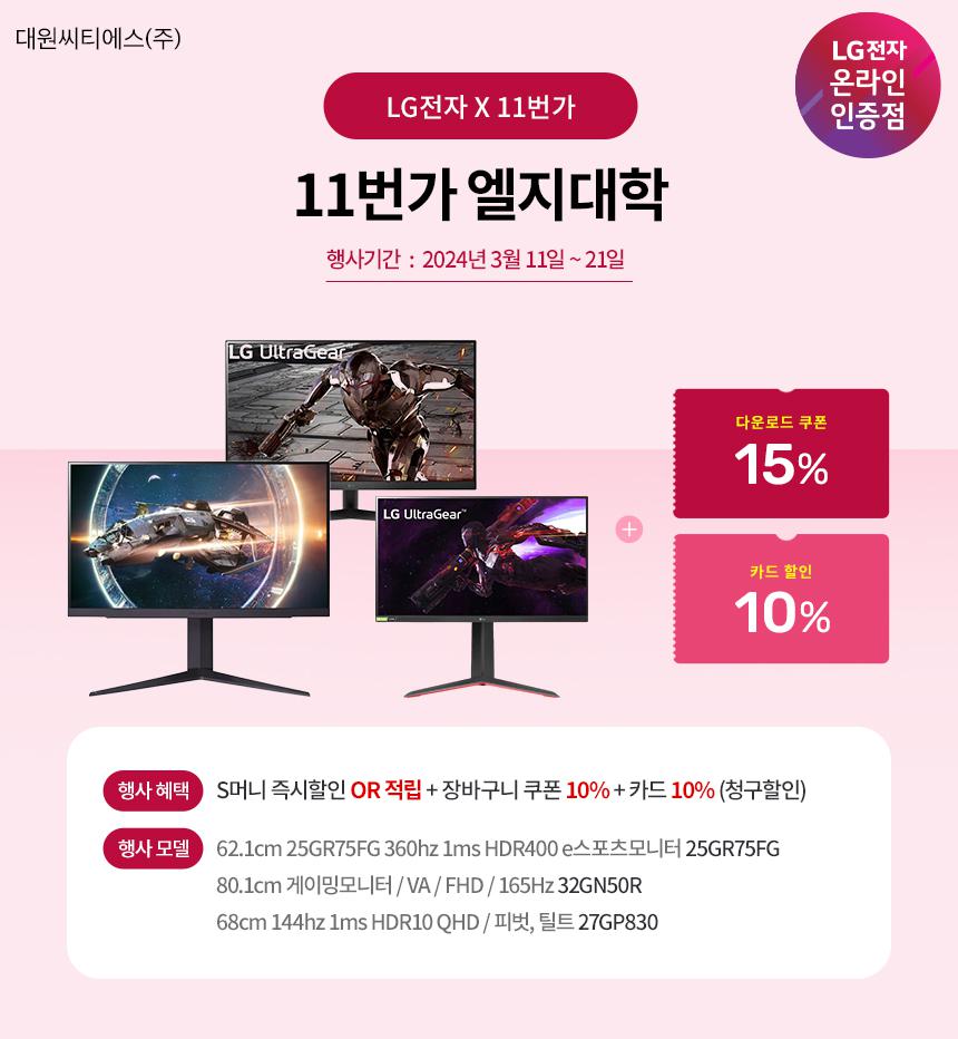 [11번가] LG 대학 프로모션 시작! 울트라기어 할인 시작! [25GR75FG 外]