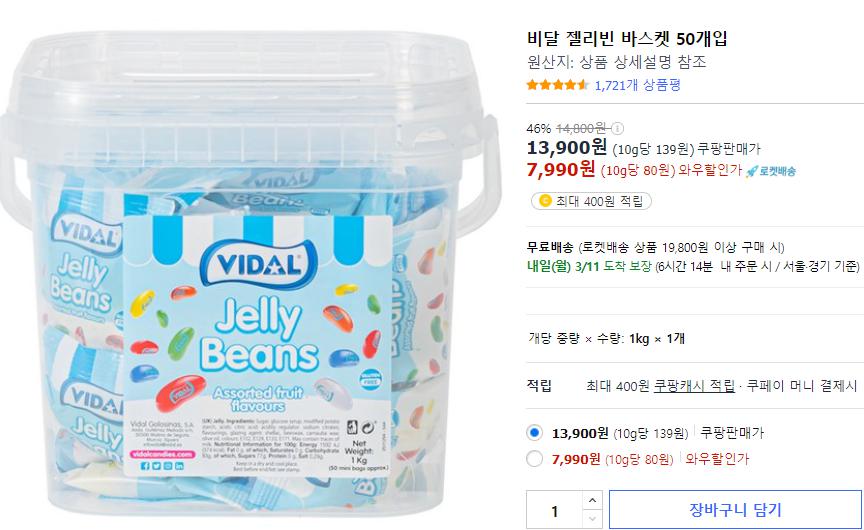 [쿠팡] 비달 젤리빈 바스켓 50개입
