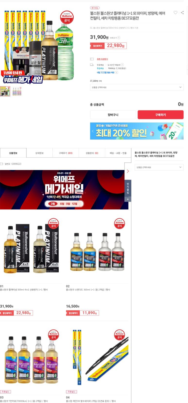 [위메프] 불스원샷 스탠다드 360ml 1+1