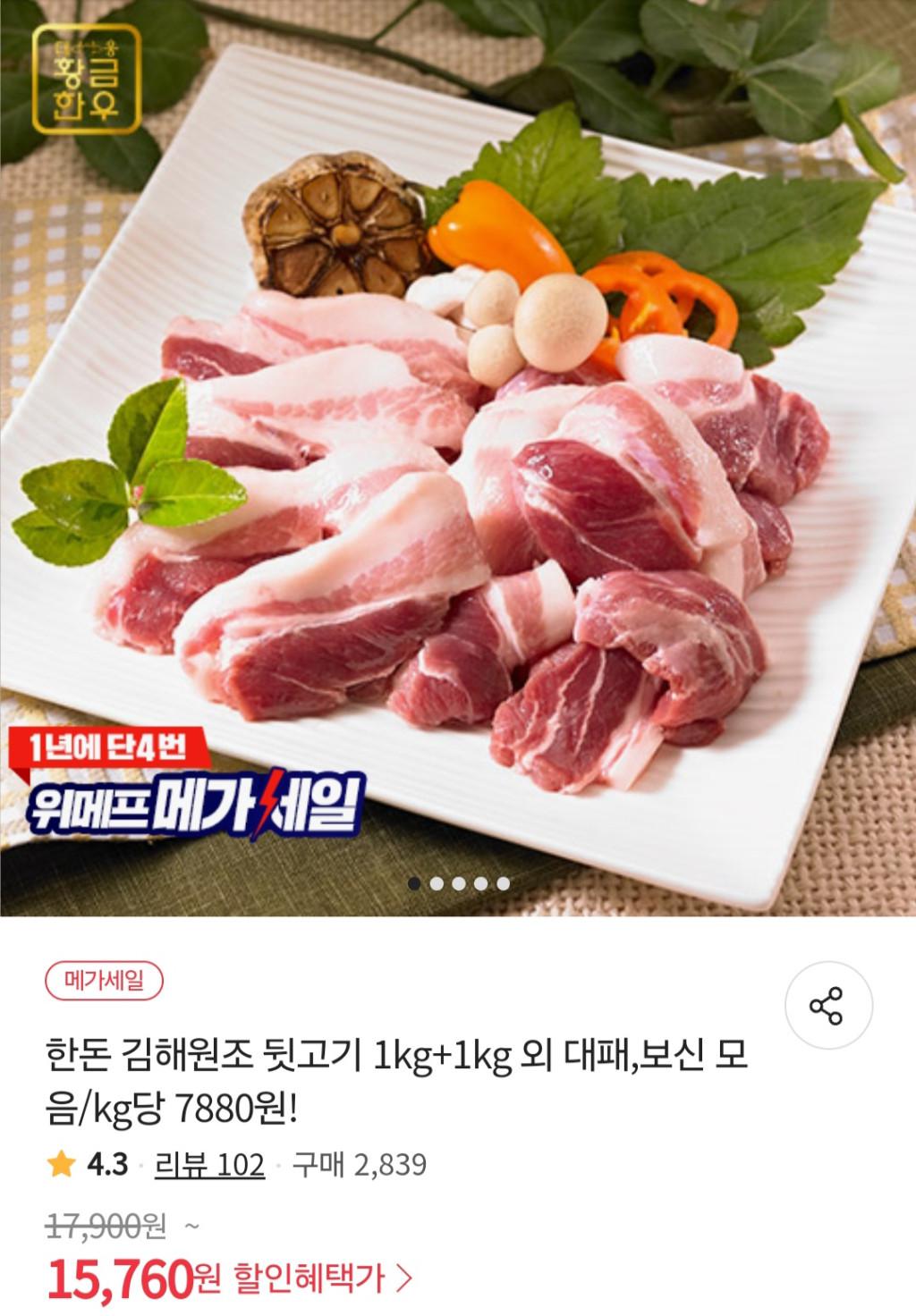 [위메프] 한돈 김해원조 뒷고기 1kg+1kg