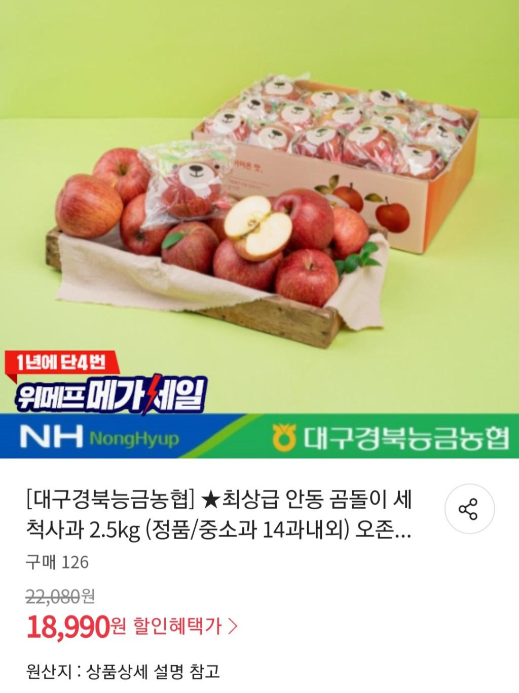 [위메프] 안동 세척사과 2.5kg 정품/중소과