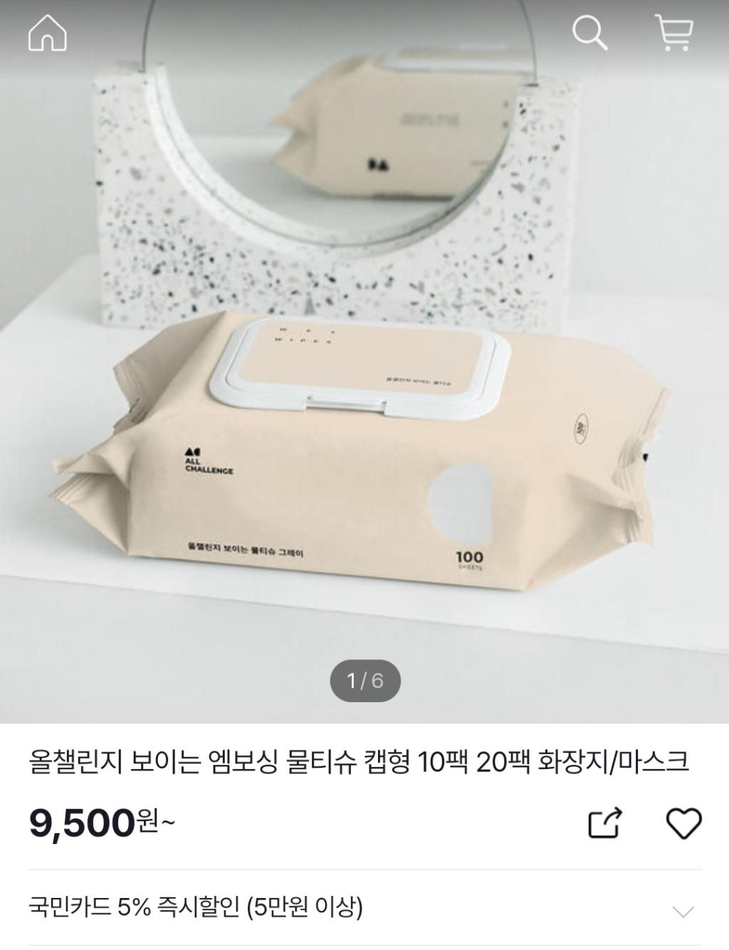 [기타] 보이는 엠보싱 물티슈 캡형 100매 20팩