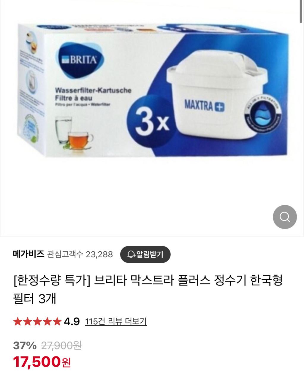 [네이버] 브리타 막스트라 플러스 정수기 한국형 필터 3개