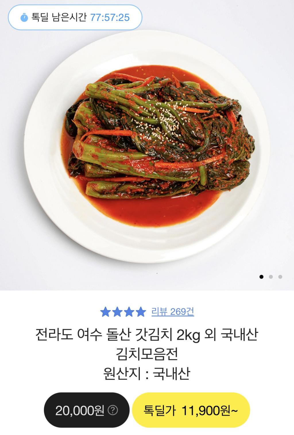 [카카오톡딜] 전라도 여수 돌산 갓김치 2Kg 11,900원 외 김치모음전/무배