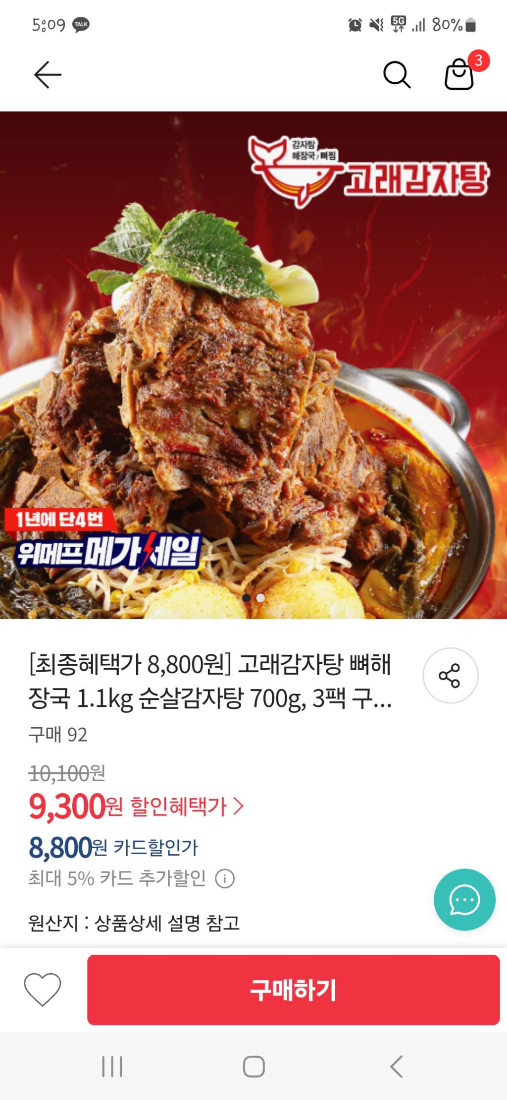 [위메프] 고래감자탕 우거지 뼈해장국 1.1KG 3팩 (15,750원/무료)