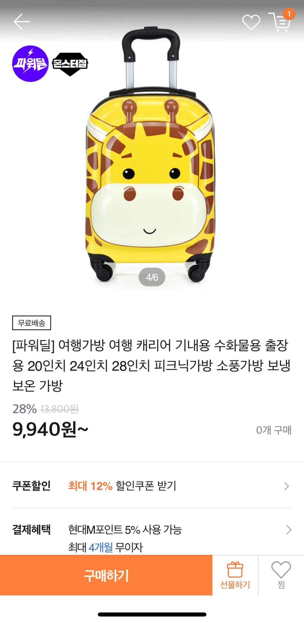 [티몬] 여행용캐리어 아이들 캐릭터 캐리어 23040/ 무배