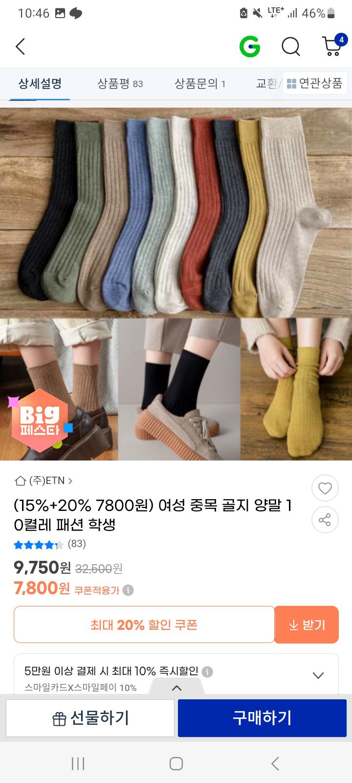 [G마켓] 골지 양말 10켤레 (7800원/무배)