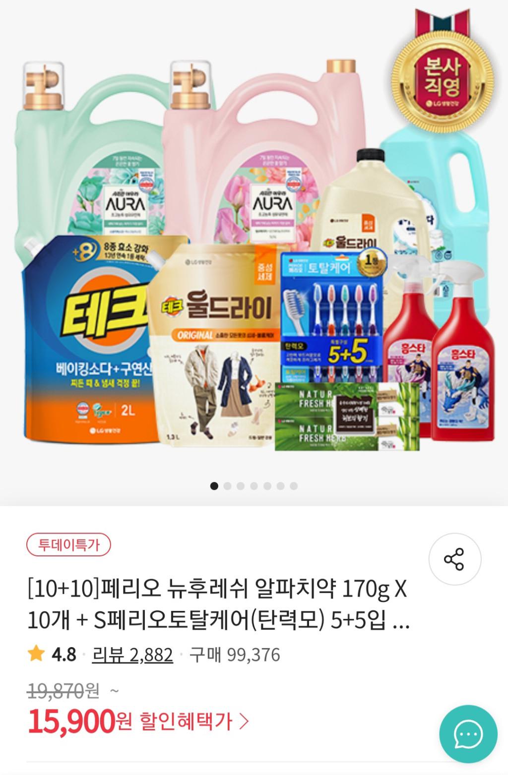 [위메프] 페리오 뉴후레쉬 알파치약 170g x 10개 + S페리오토탈케어(탄력모) 10입 (15…