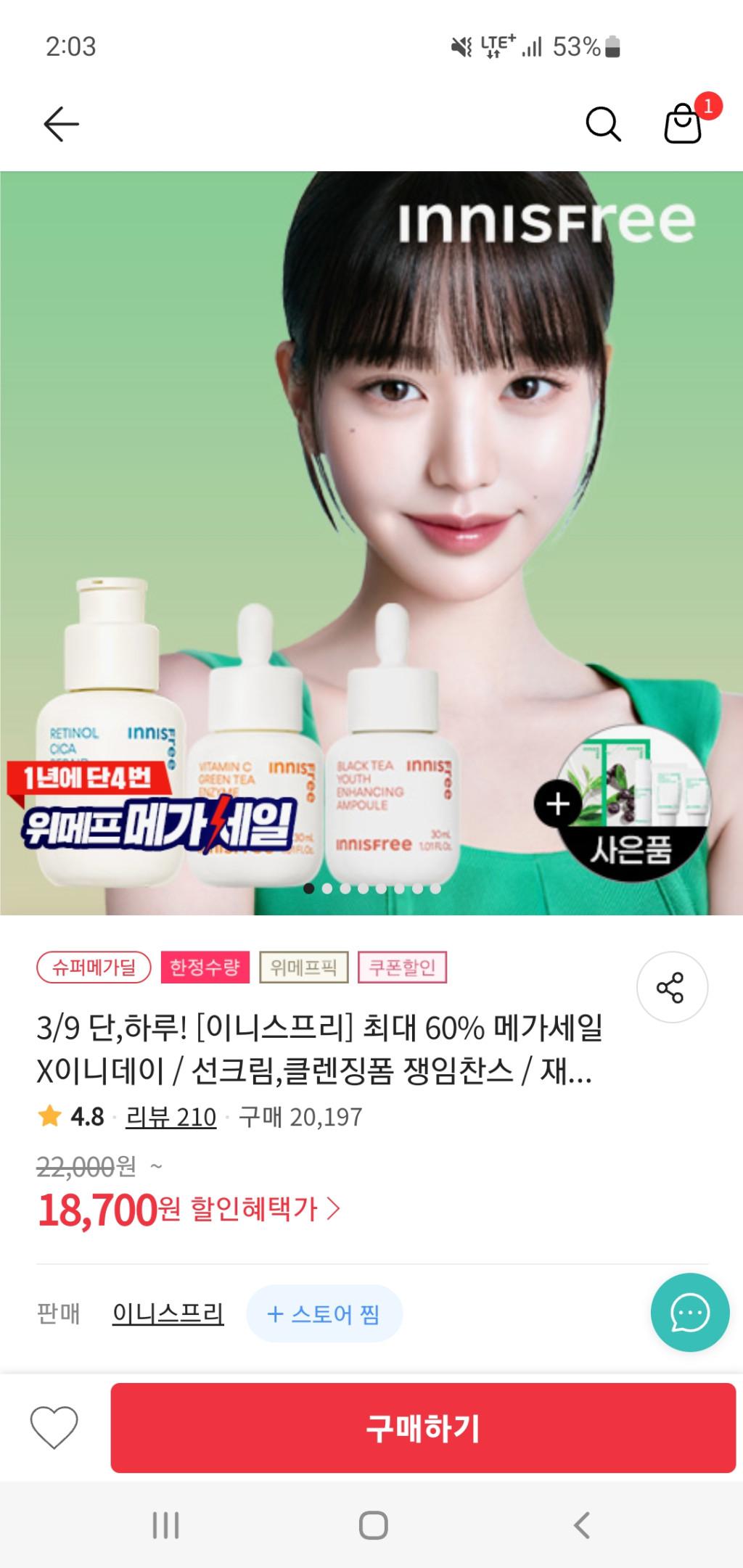 [위메프] 이니스프리 그린티 아미노 수분 클렌징폼 150g 1+1+1