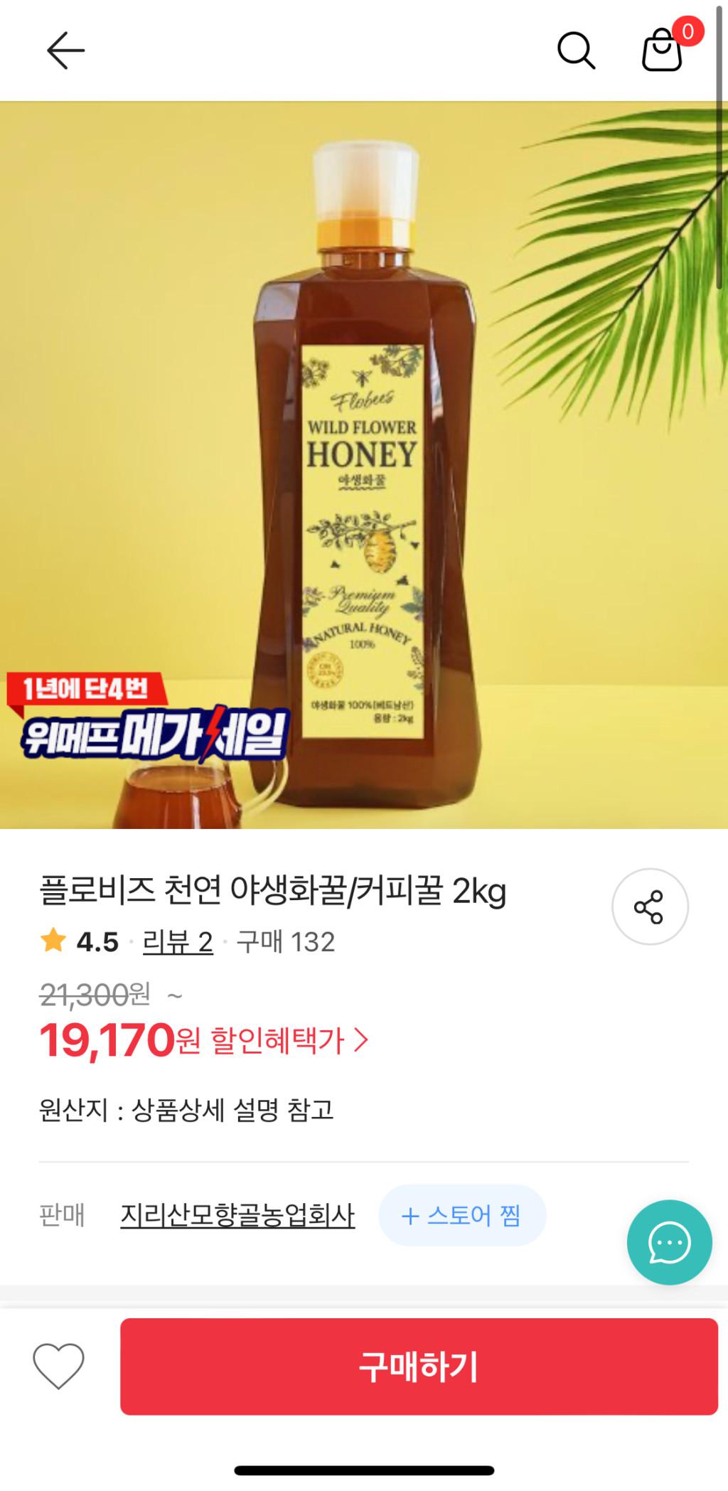 [위메프] 플로비즈 천연 야생화꿀 2kg 대용량 수입꿀 19,170원 무배