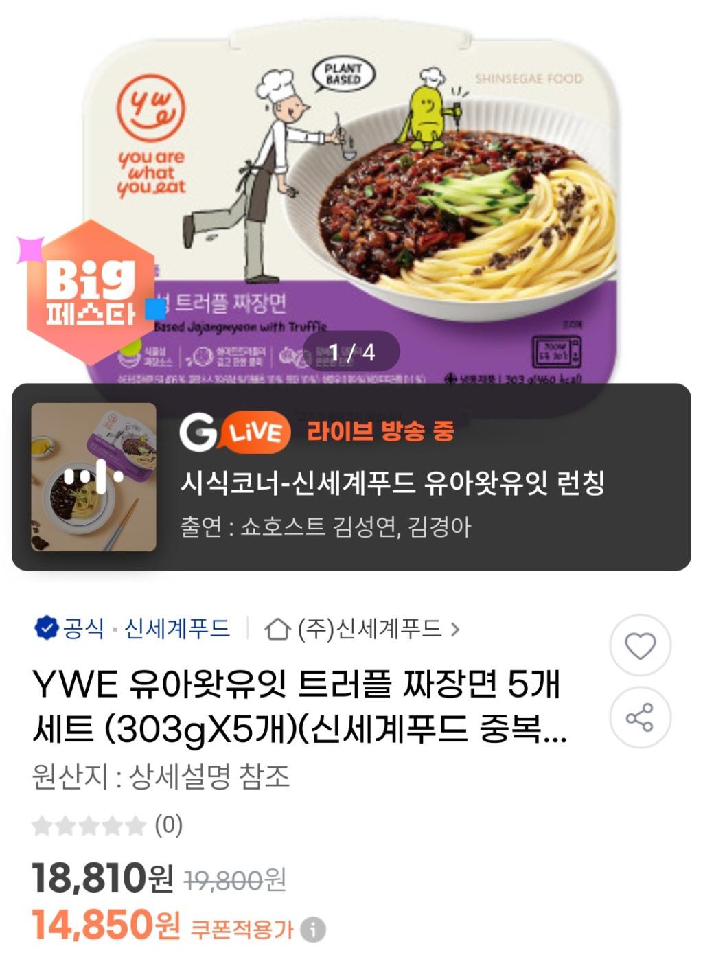 [G마켓] 유아왓유잇 트러플 짜장면 5개 (무배)