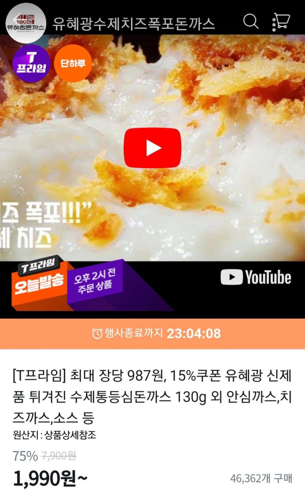 [티몬] 유혜광 튀겨진돈까스 1개 + 수제통등심돈까스 12장 (무배)