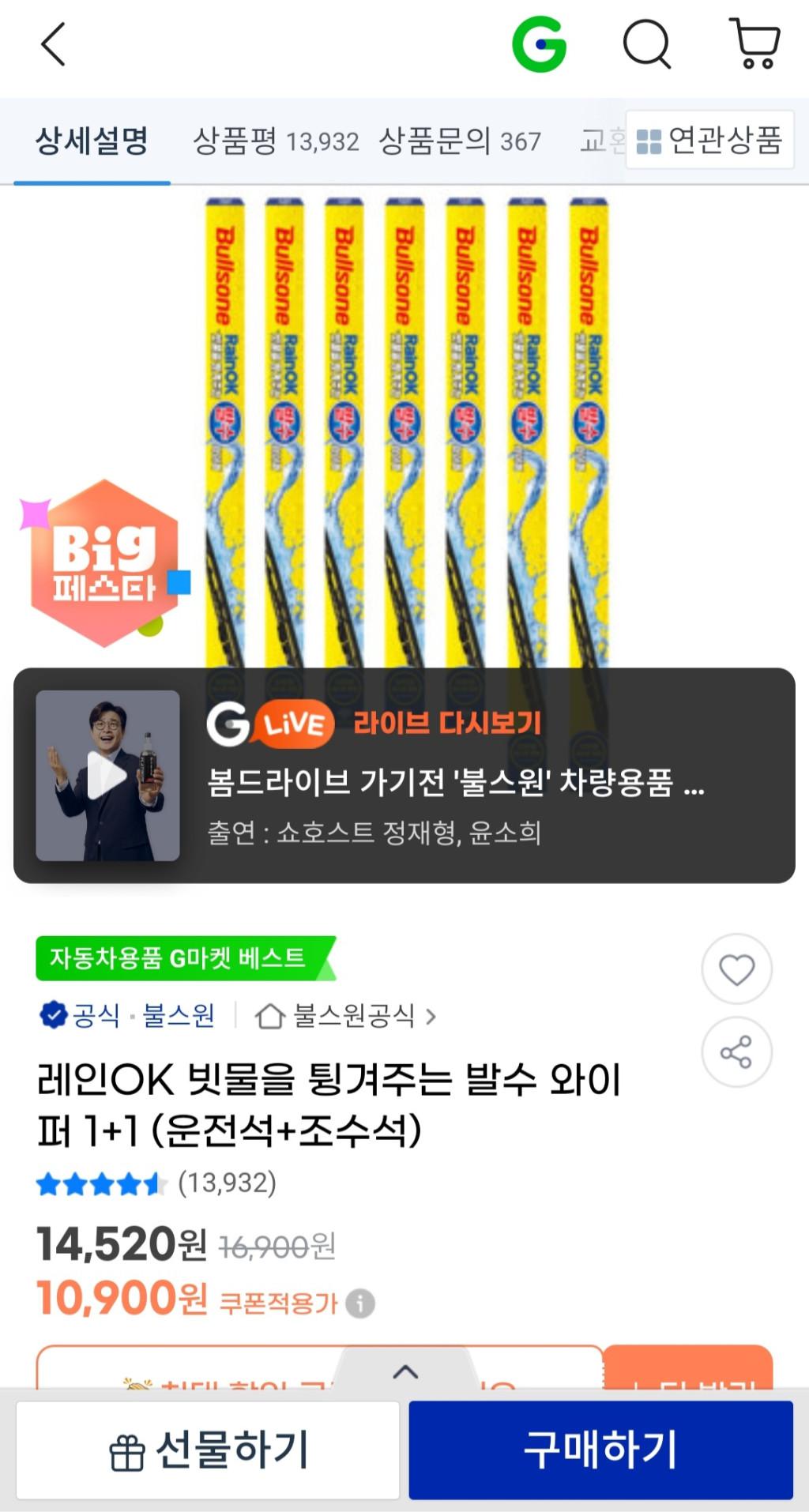 [G마켓] 레인OK 발수 와이퍼 1+1(무배)