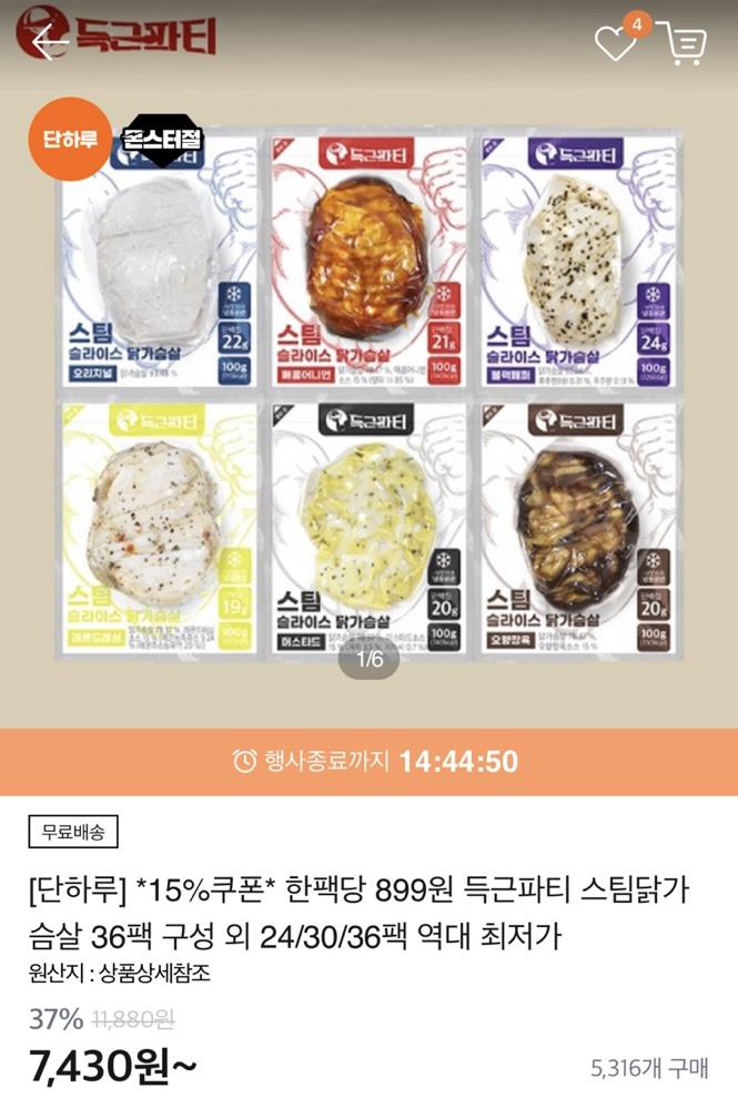 [티몬] 득근파티 스팀닭가슴살 36팩 팩당 899원(32,355원/무배)