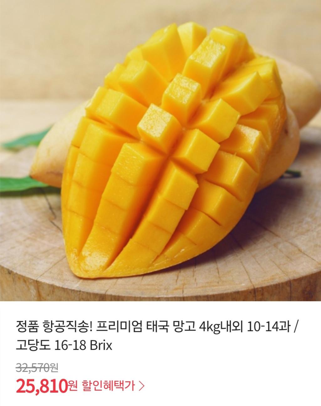 [위메프] 항공직송 정품 프리미엄 태국 망고 대과 4kg 10-14과