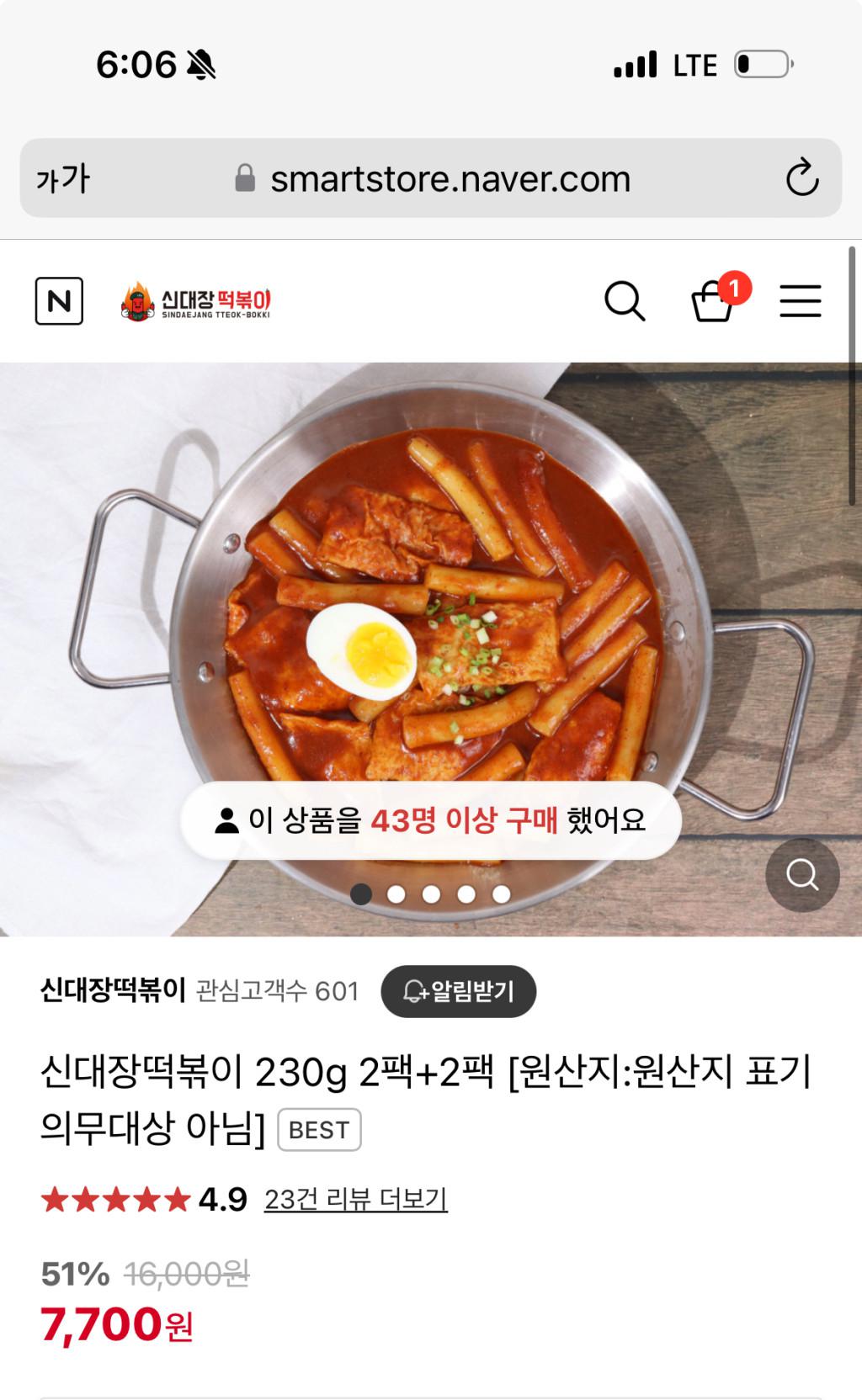 [네이버] 신대장 떡볶이 230g 2팩+2팩