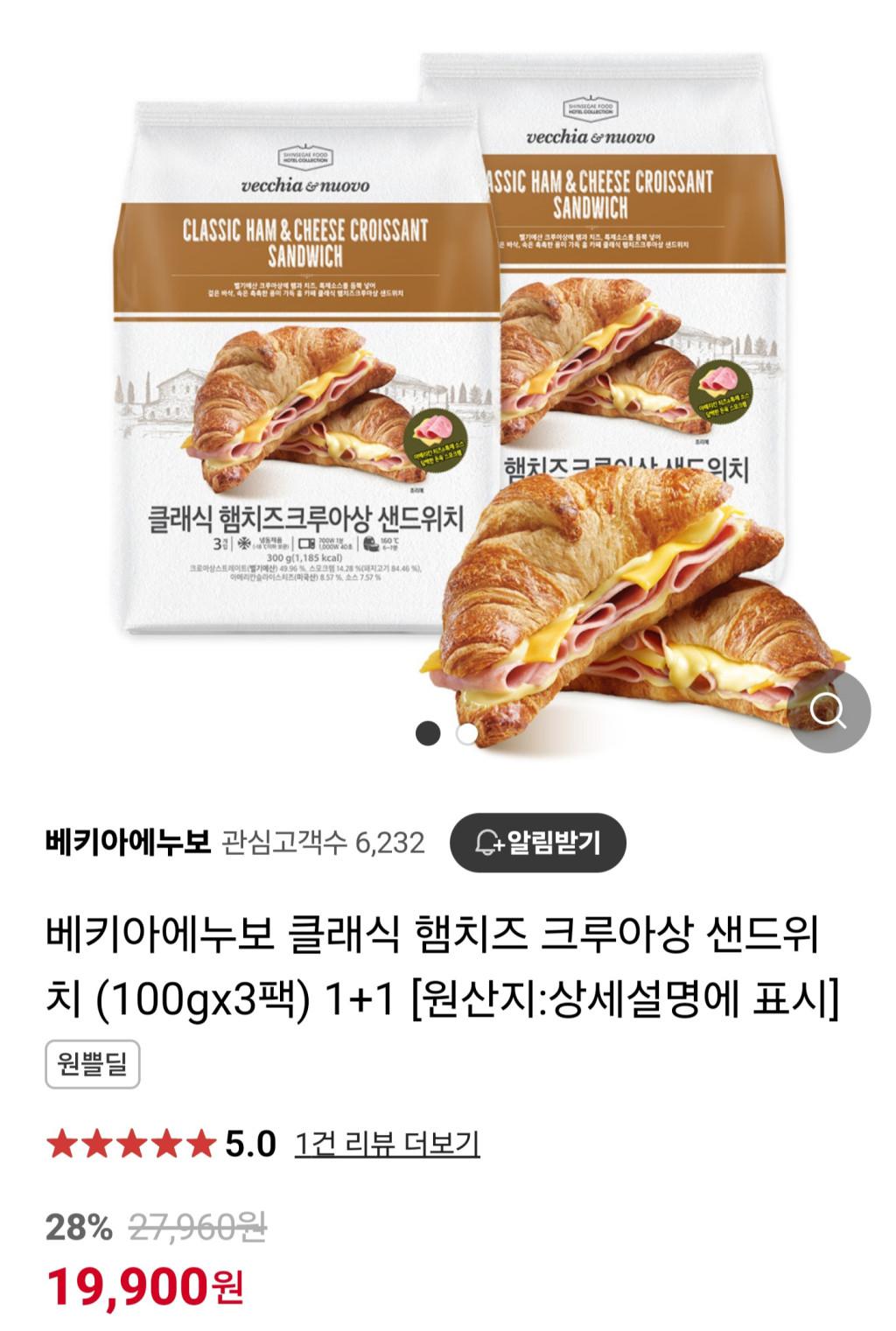 [네이버] 베키아에누보 클래식 햄치즈 크루아상 샌드위치 (100gx3팩) 1+1 (무배)