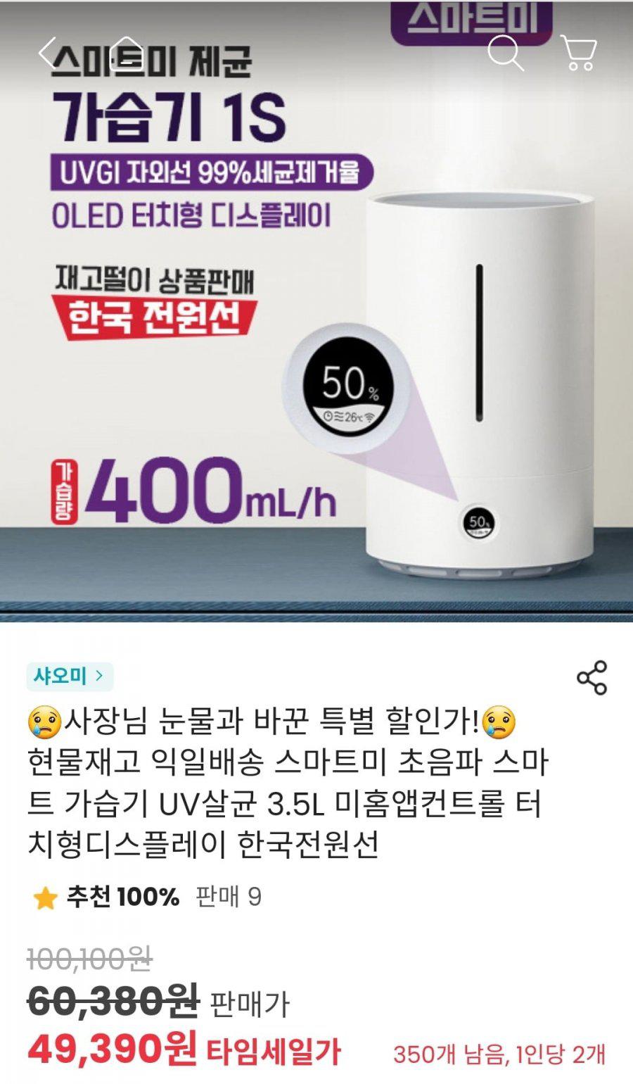 [큐텐] [큐텐] 샤오미 스마트미 살균 uv 가습기 (49,390/무료)
