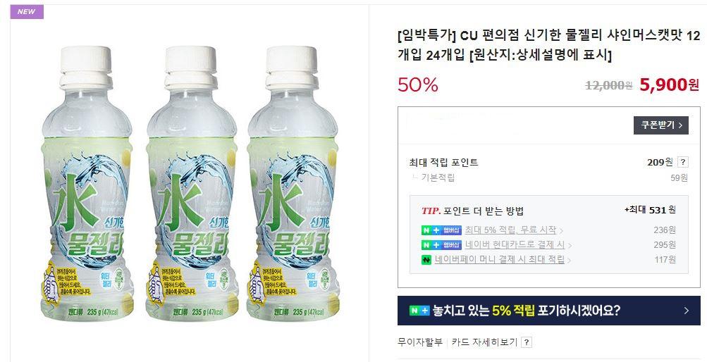 [네이버] 물젤리 샤인머스캣맛 12개입 (5,900원 / 무료배송)