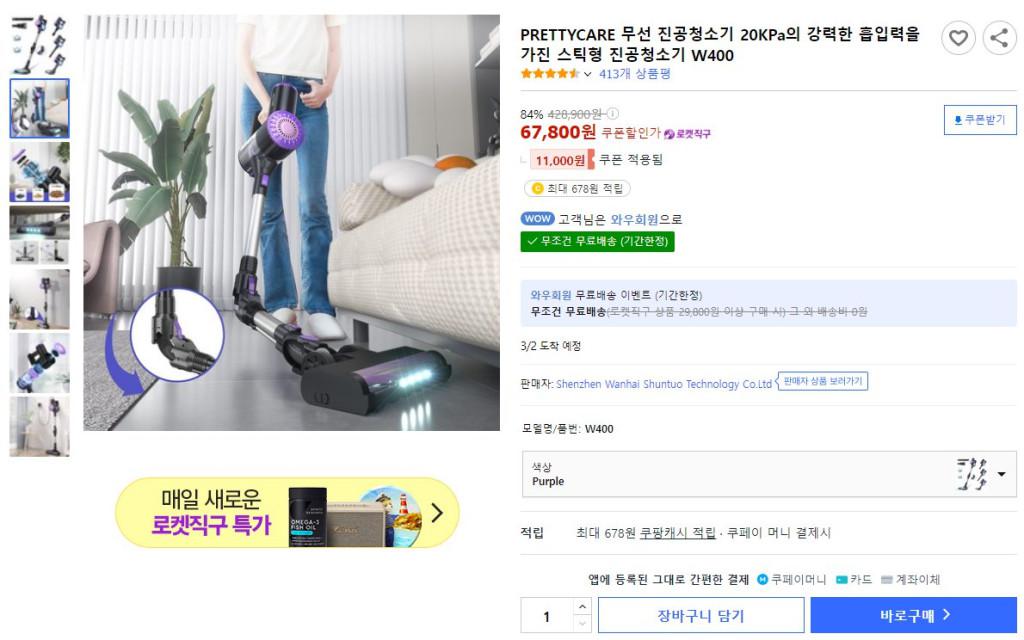 [쿠팡] PRETTYCARE 무선 진공청소기(67,800/무료배송)