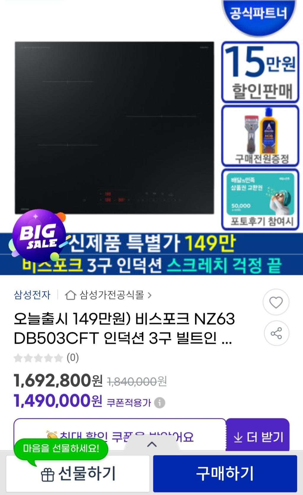 [G마켓] 삼성 비스포크 3구 빌트인 인덕션